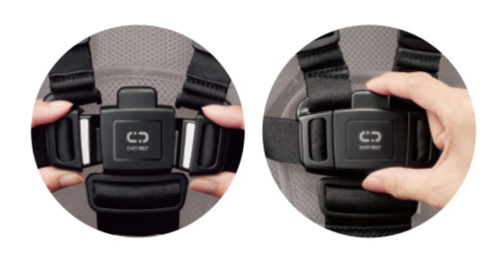 左右のベルトを近づけるだけでカチッと装着できるため、赤ちゃんが動いていてもスムーズに装着できます。